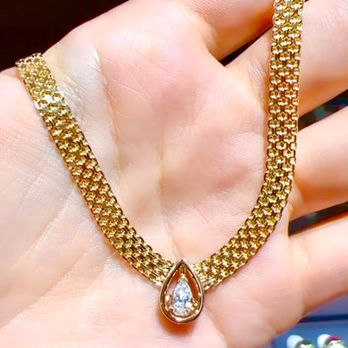Slightly elongated diamond pear necklace