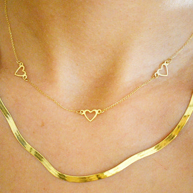 Heart Station Necklace 14k